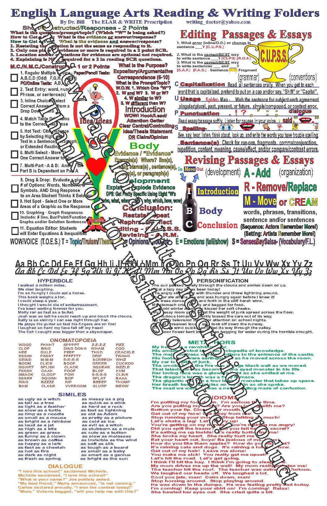 FEEL FREE TO EMAIL US AT WRITING_DOCTOR@YAHOO.COM IF YOU HAVE ANY QUESTIONS OR WOULD LIKE INFORMATION ON IN PERSON CAMPUS OR DISTRICT TRAININGS AND EVEN ONE-ON-ONE TRAININGS IN ALL AREAS OF READING AND WRITING AS WELL AS MATH.